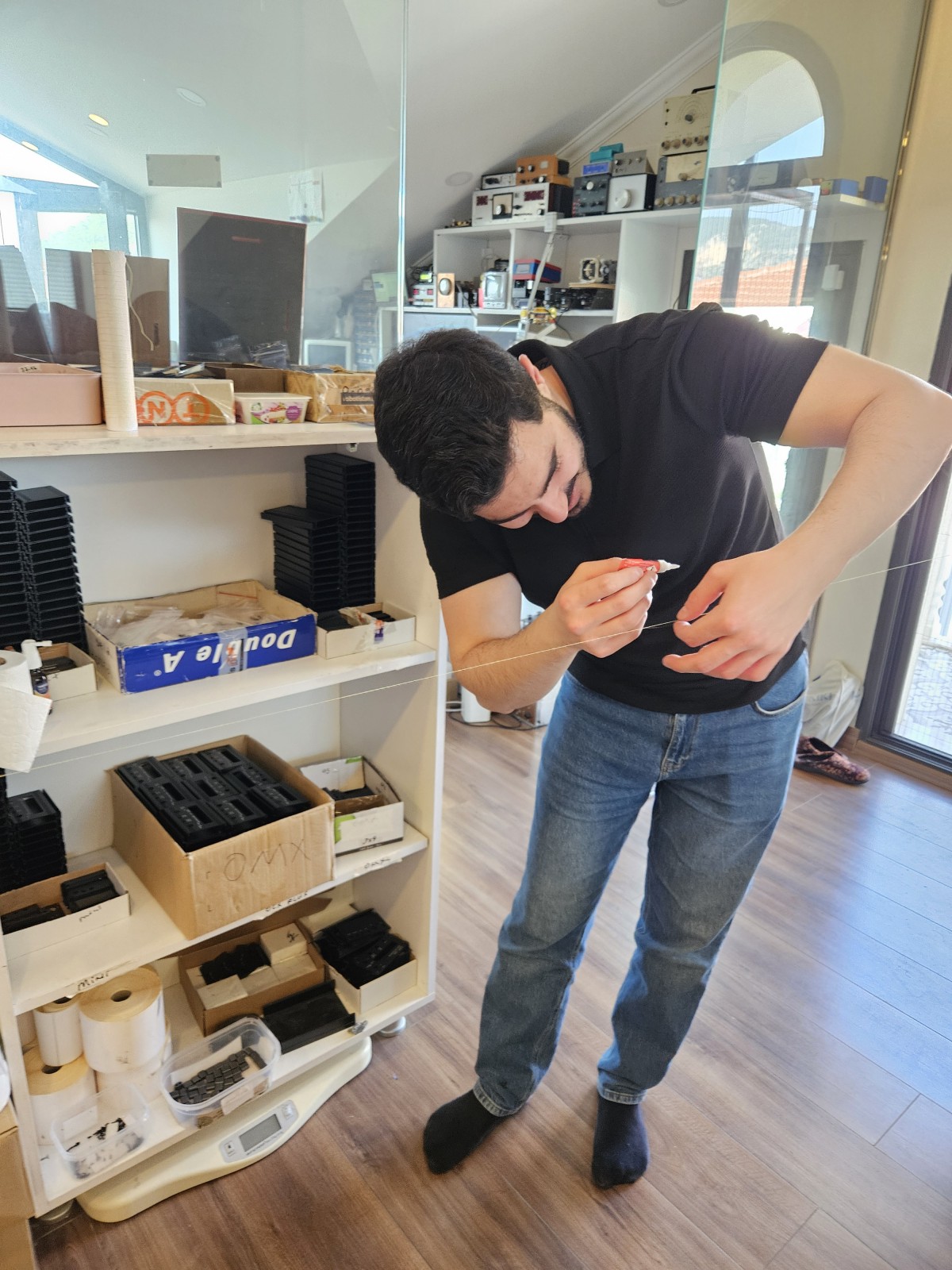 It was difficult to solder these tiny wires and tie the string onto the trackers. We wound the antennas around paper rolls to prevent them tangling up. Eventually everything was ready!