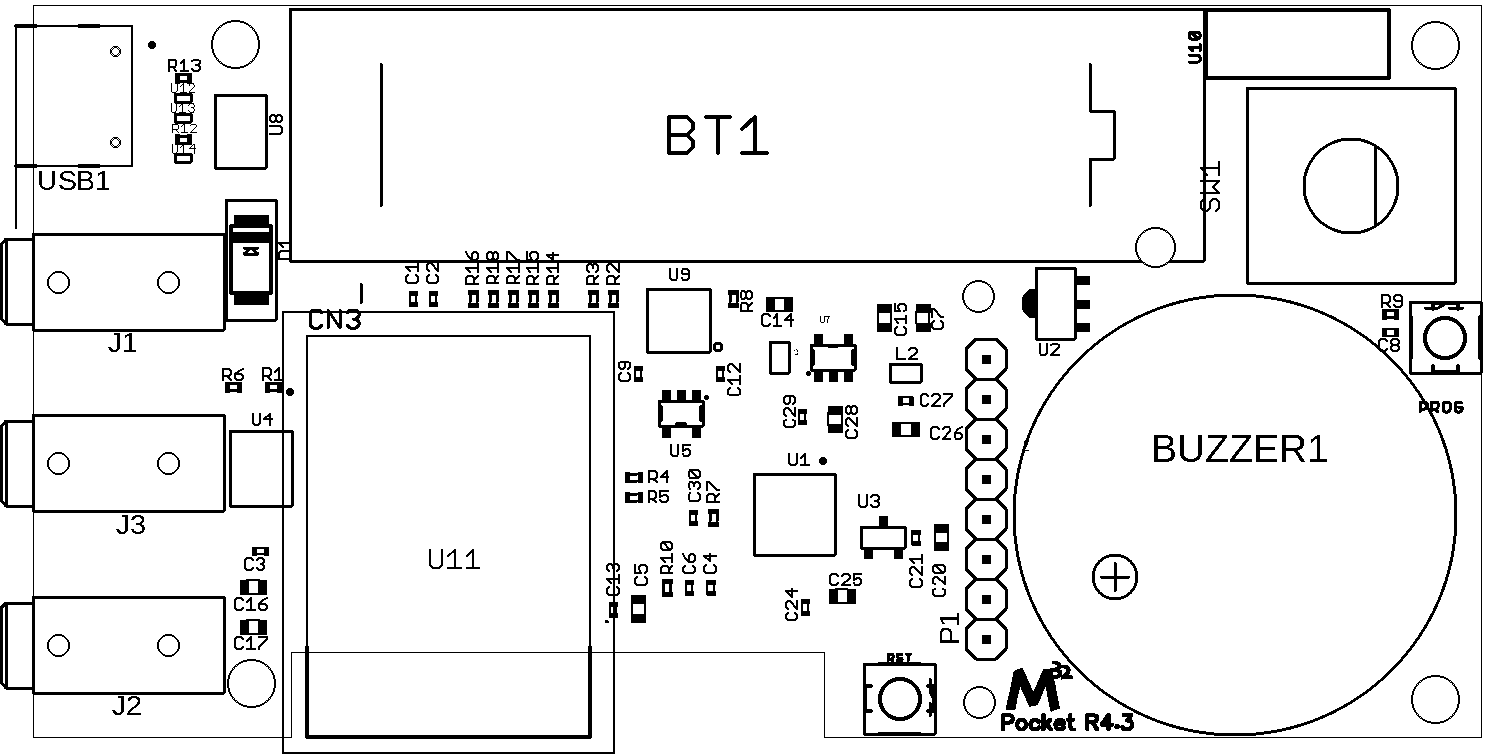 - Completely assembled and tested M32 Pocket, including all SMD components and through-hole components