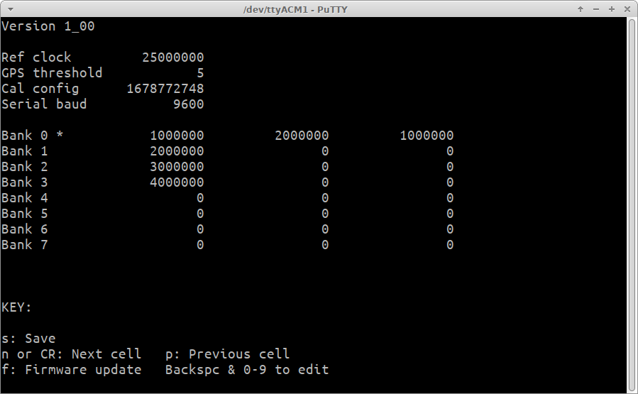 A programmable crystal replacement. It has three independent outputs with frequency range 3.5kHz to approx 300MHz, and can be optionally GPS disciplined. Configuration is by a micro-USB connector and PC terminal emulator |