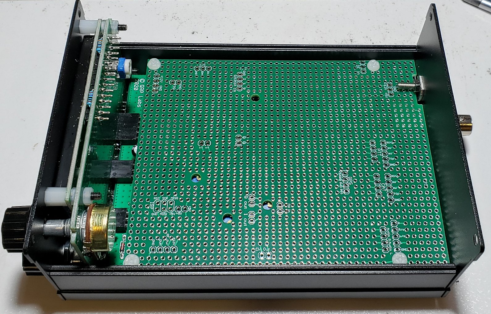 These photos show the front panel assembly. The design is such that the buttons, LCD and rotary controls (encoder and gain potentiometer) are all at the correct height to fit through the front panel.