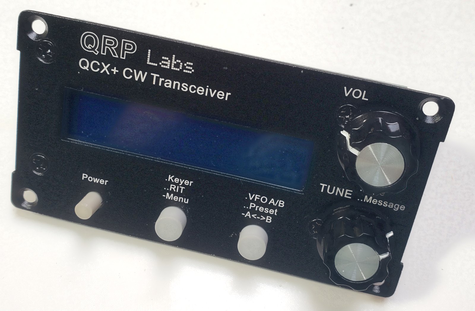 The buttons are 12mm high with special button caps so that they protrude the right amount from the front panel. The 7x7mm latching push-switch On/Off button uses a smaller cap and is also at the correct height. The LCD module is soldered in place using a 1x16-pin header. It does NOT use a pin-header plug and socket arrangement like the original QCX - the LCD module is not now removable. Nor should there be any need, since there are no components in the 2mm gap underneath it.
